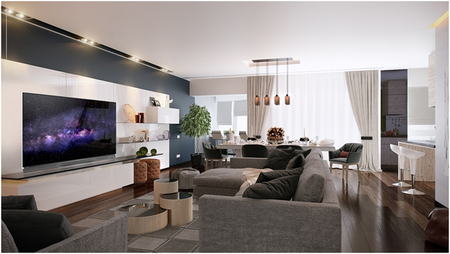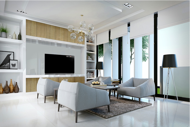 Xu hướng thiết kế tối giản luôn là sự lựa chọn hoàn hảo cho những phòng giải trí cá nhân. Công nghệ vượt bậc với TV OLED siêu mỏng cùng chất lượng âm thanh, hình ảnh đạt chuẩn biến không gian phòng khách trở thành một rạp chiết phim thu nhỏ đặc biệt vô cùng sống động.