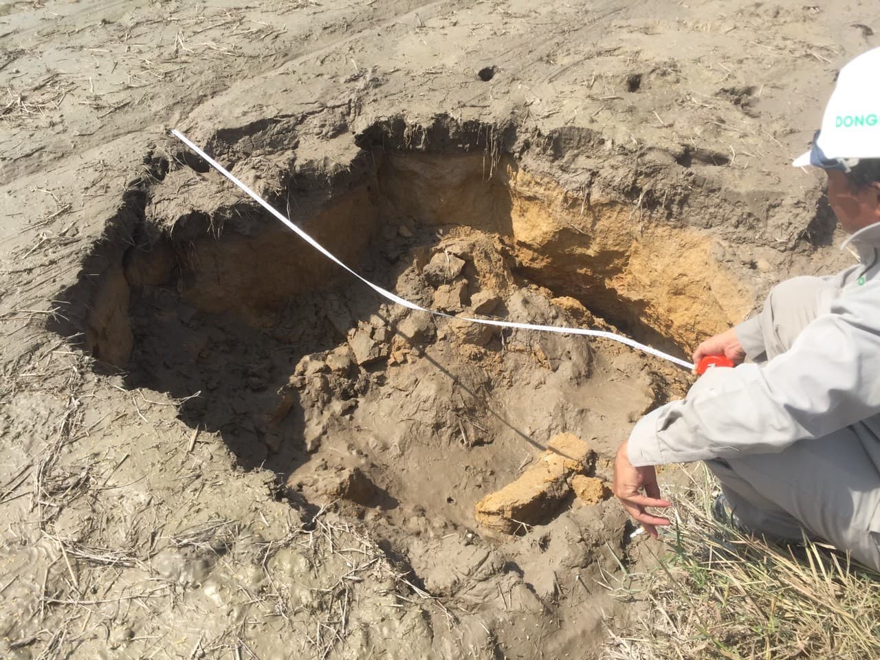 Tiến hành đo dạc, xem xét hiện trạng các hố sụt lún để có giải pháp chống lún hiệu quả