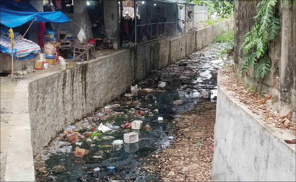 Cách đây chưa đầy một năm, đoạn mương nằm sát bên chợ Phường Đúc (đường Bùi Thị Xuân) được địa phương đầu tư nạo vét, xây bờ kè kiên cố để phục vụ thoát nước mưa, nước thải sinh hoạt trong khu dân cư và khu vực chợ ra sông Hương. Trong quá trình xây dựng bờ kè, mở rộng đoạn mương này, phường Phường Đúc đã kết hợp nâng cấp, chỉnh trang lại một số khu vực kinh doanh của chợ, đồng thời bố trí một dãy hàng rào sắt sát bờ kè với mục đích chính là để tạo vách ngăn an toàn. Những đoạn hở còn lại không thể ngăn được tình trạng xả rác trực tiếp xuống mương của chị em tiểu thương. Chỉ sau một thời gian ngắn đưa vào sử dụng, đoạn mương dài chưa tới 100m nối từ đường Bùi Thị Xuân ra tiếp giáp mép bờ sông Hương đã bồng bềnh đủ loại rác, dòng nước đen ngòm vì nước khó lưu thông.
