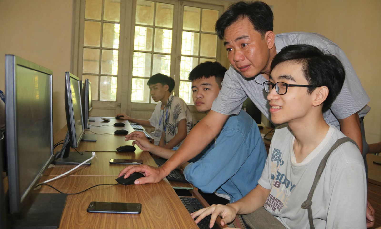 Giảng viên khoa Công nghệ thông tin, Trường ĐH Khoa học, ĐH Huế hướng dẫn sinh viên thực hành. Ảnh: Hữu Phúc