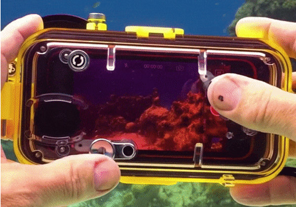 Ngoài ra, phụ kiện này còn trang bị một ống kính nhỏ, giúp người dùng ghi lại hình ảnh sắc nét hơn khi đang ở dưới nước. Phần trước của phụ kiện là một màn hình hỗ trợ nút bấm được dưới nước, để người dùng dễ dàng thao tác chỉnh sửa ảnh, quay video khi đang ở dưới nước.