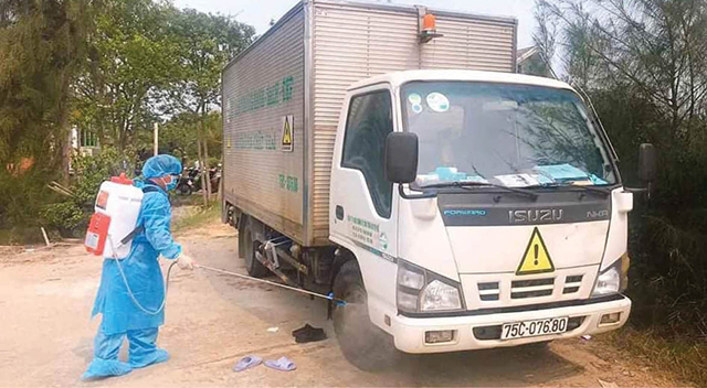 Phun xịt khử khuẩn đảm bảo trước và sau khi thu gom, vận chuyển xử lý rác thải tại các khu cách ly tập trung