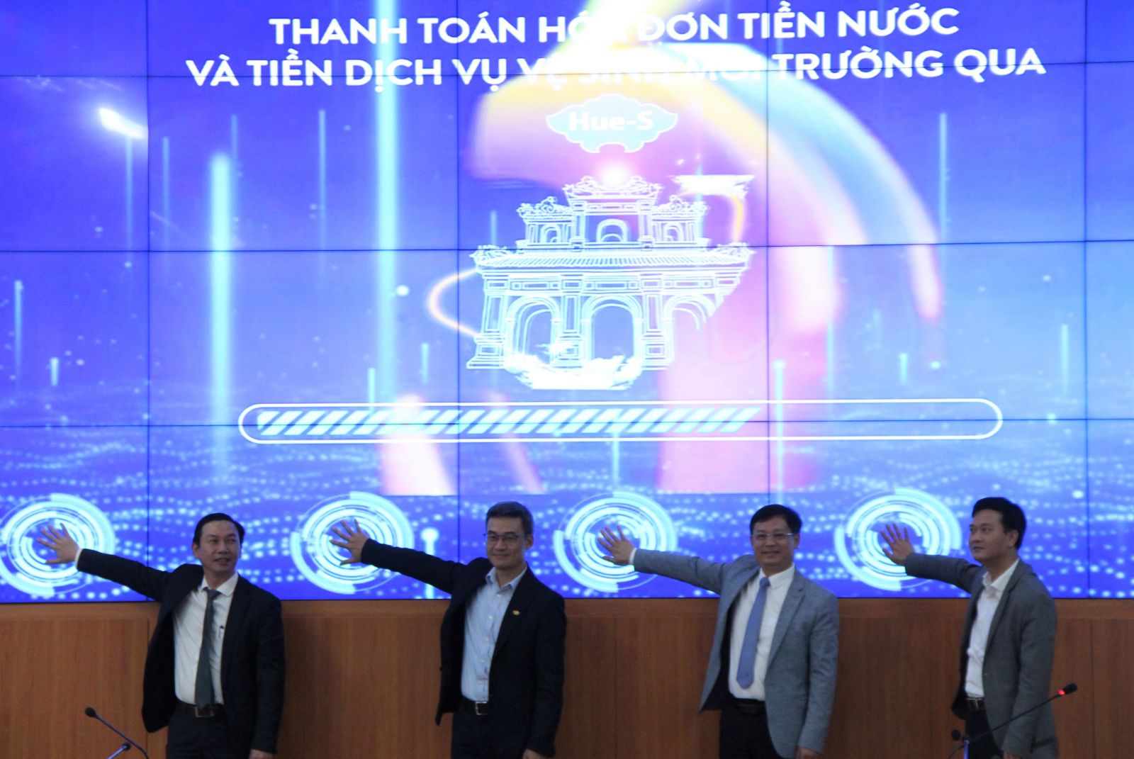 HNN.VN - Giải pháp thanh toán hóa đơn tiền nước, phí vệ sinh môi trường trên nền tảng Hue-S ra mắt sáng 23/2 tại UBND tỉnh. Đến dự có UVTV Tỉnh ủy, Phó Chủ tịch Thường trực UBND tỉnh Nguyễn Thanh Bình.