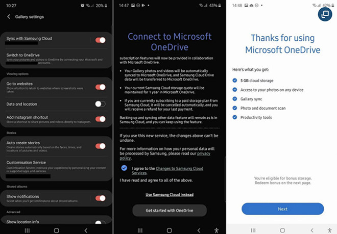 Nếu không gian miễn phí của Samsung Cloud không đáp ứng yêu cầu lưu trữ cá nhân, Microsoft sẽ cung cấp thêm cho người dùng 15 GB dung lượng dữ liệu miễn phí, miễn là người dùng thực hiện chuyển đổi sang OneDrive. Tuy nhiên, hãy nhớ rằng người dùng sẽ không thể hoàn tác các thay đổi sau khi họ đồng bộ hóa ảnh và video của mình.