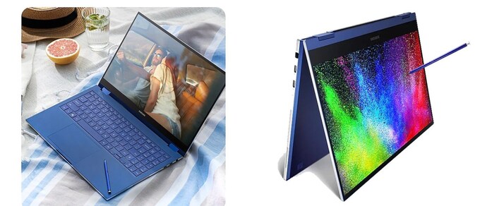 Ngoài màn hình hỗ trợ S Pen, bộ đôi Galaxy Book Pro và Pro 360 sẽ được trang bị chip Intel Core i5 và i7 thế hệ mới nhất. Galaxy Pro 360 là máy tính 2 trong 1, thiết kế bản lề 360 độ, có thể sử dụng nhiều tư thế khác nhau. Ngoài ra, model này còn hỗ trợ kết nối 5G.
