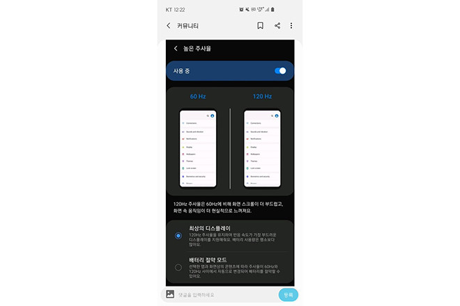 Ngoài việc chuyển đổi giữa chế độ 60 Hz và 120 Hz, người dùng cũng có thể có các tùy chọn bổ sung để tắt chế độ tốc độ làm mới cao và giữ cho màn hình ở mức 60 Hz. Ngoài ra, người dùng có thể kích hoạt chế độ tốc độ làm mới cao và giữ cho nó luôn duy trì ở tần số làm mới 120 Hz.