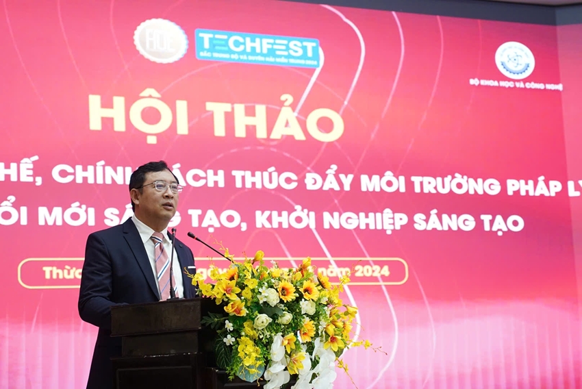 | Cục trưởng Cục Phát triển thị trường và doanh nghiệp KH&CN phát biểu tại hội thảo |