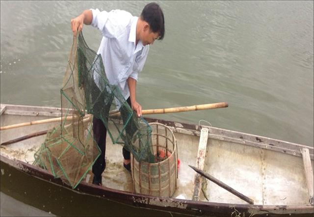 Ông Nguyễn Văn Sử ở xã Vinh Giang (Phú Lộc) là một trong 6 hộ được chọn làm thí điểm mô hình vào nuôi thủy sản xen ghép (tôm-cua-cá) trong năm 2018.