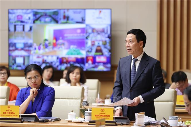 Bộ trưởng Bộ Thông tin và Truyền thông Nguyễn Mạnh Hùng phát biểu. Ảnh: Dương Giang/TTXVN