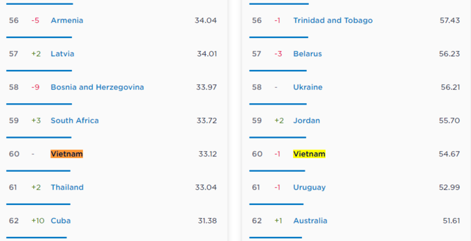 Với kết quả này, Việt Nam đứng thứ 60 trong danh sách của Speedtest về tốc độ Internet toàn cầu ở cả hạng mục mạng băng thông rộng cố định và mạng di động. Riêng với Internet băng rộng cố định, Việt Nam tụt một hạng so với tháng 5. Tốc độ Internet trung bình của thế giới ở hai hạng mục này lần lượt là 78,26 và 34,67 Mb/giây, đều cao hơn Việt Nam.
