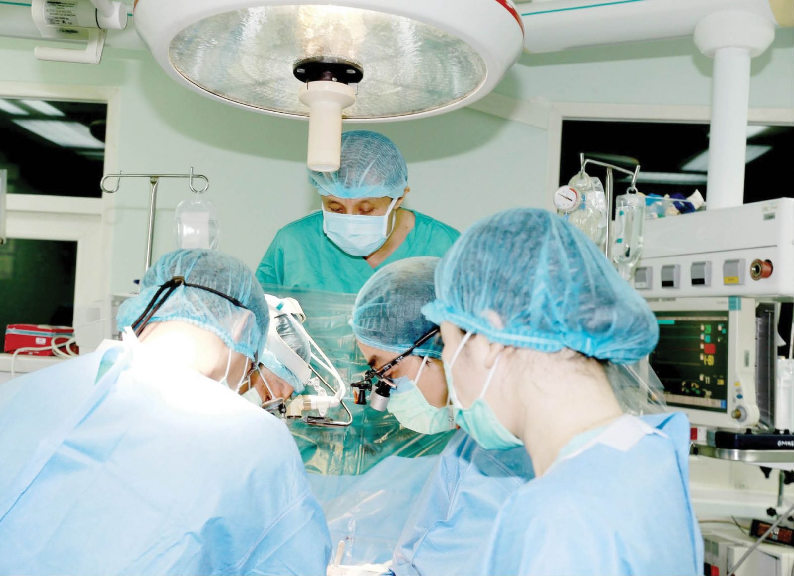 GS. TS. Phạm Như Hiệp (trong cùng) theo dõi các cộng sự thực hiện một ca phẫu thuật (ảnh minh họa). Ảnh: BVTW Huế cung cấp