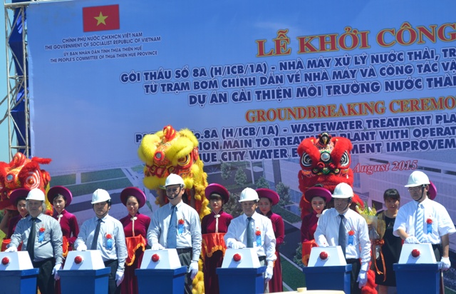 HNN.VN - Sáng 15/8, Công ty CP Môi trường và Công trình đô thị Huế, Ban quản lý Dự án Cải thiện Môi trường nước Tp. Huế khởi công xây dựng Nhà máy xử lý nước thải ở phường An Đông (Tp. Huế).