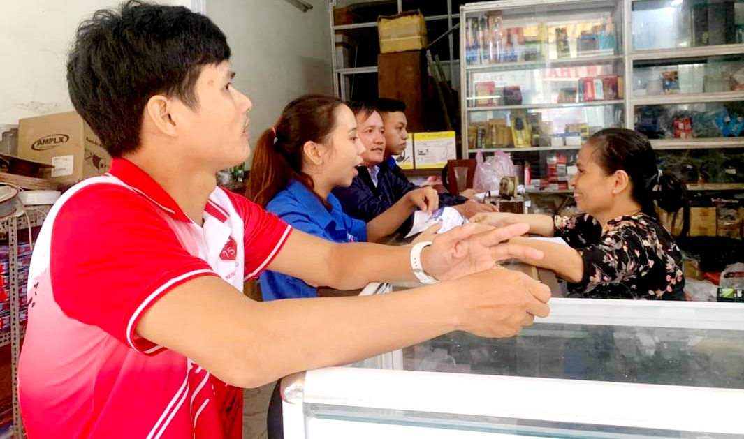 Là một trong những địa phương có số hộ kinh doanh mua bán lớn nằm ở các trục đường trung tâm như Mai Thúc Loan, Huỳnh Thúc Kháng, Trần Hưng Đạo… nên ngoài việc tuyên truyền và vận động các hộ kinh doanh sử dụng ví điện tử trên Hue- S, các đơn vị đã hướng dẫn, tư vấn mở điểm chấp nhận thanh toán QR Hue- S, đồng thời tuyên truyền vận động bà con đăng ký tài khoản định danh điện tử trên điện thoại thông minh.