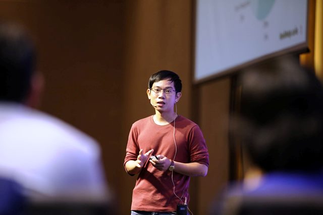 Phạm Ngọc Anh Tùng trong một lần trình bày câu chuyện khởi nghiệp của mình ở Malaysia. Ảnh: Nhân vật cung cấp