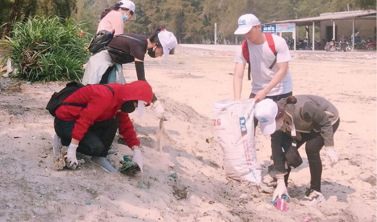 Sinh viên khoa Môi trường, Trường đại học Khoa học dọn dẹp, thu gom rác thải tại bờ biển