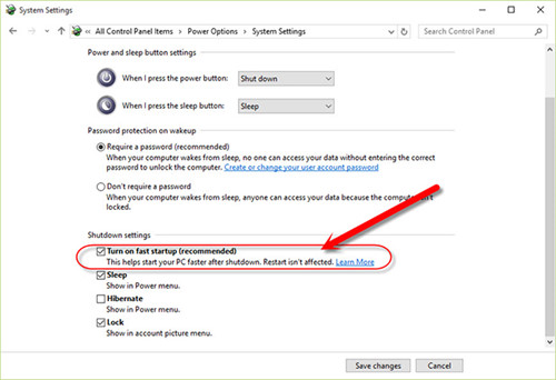 Nếu quan tâm đến vấn đề Fast Startup và muốn tắt nó đi, bạn làm như sau: Truy cập Control Panel của Windows 10 và vào đường dẫn Control Panel > Power Options rồi nhấp vào mục Choose what the power buttons do ở cột bên trái. Click vào liên kết Change settings that are currently unavailable, hủy dấu chọn trước Turn on fast startup (recommended) dưới phần Shutdown settings và chọn Save changes là xong.