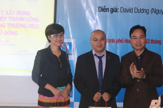 Đại diện đơn vị tài trợ tặng quà lưu niệm cho diễn giả