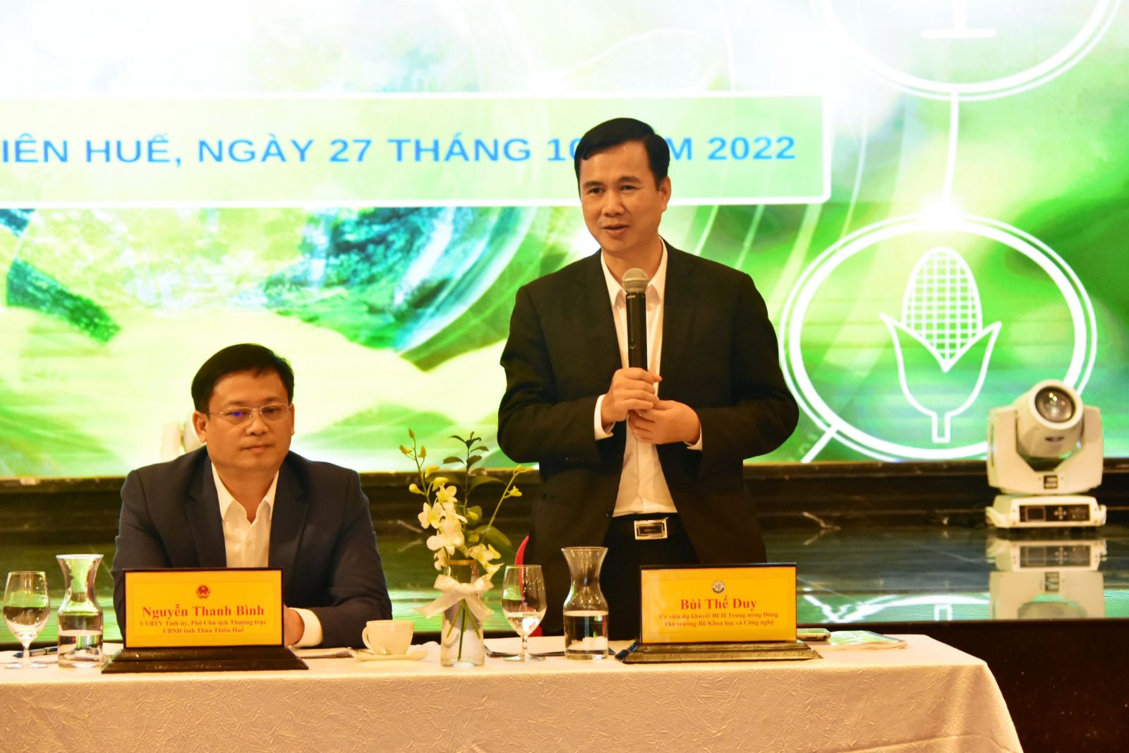 Tham dự hội thảo diễn ra chiều 27/10 có Ủy viên dự khuyết Trung ương Đảng, Thứ trưởng Bộ Khoa học & Công nghệ (KH&CN) Bùi Thế Duy; UVTV Tỉnh ủy, Phó Chủ tịch Thường trực UBND tỉnh Nguyễn Thanh Bình.