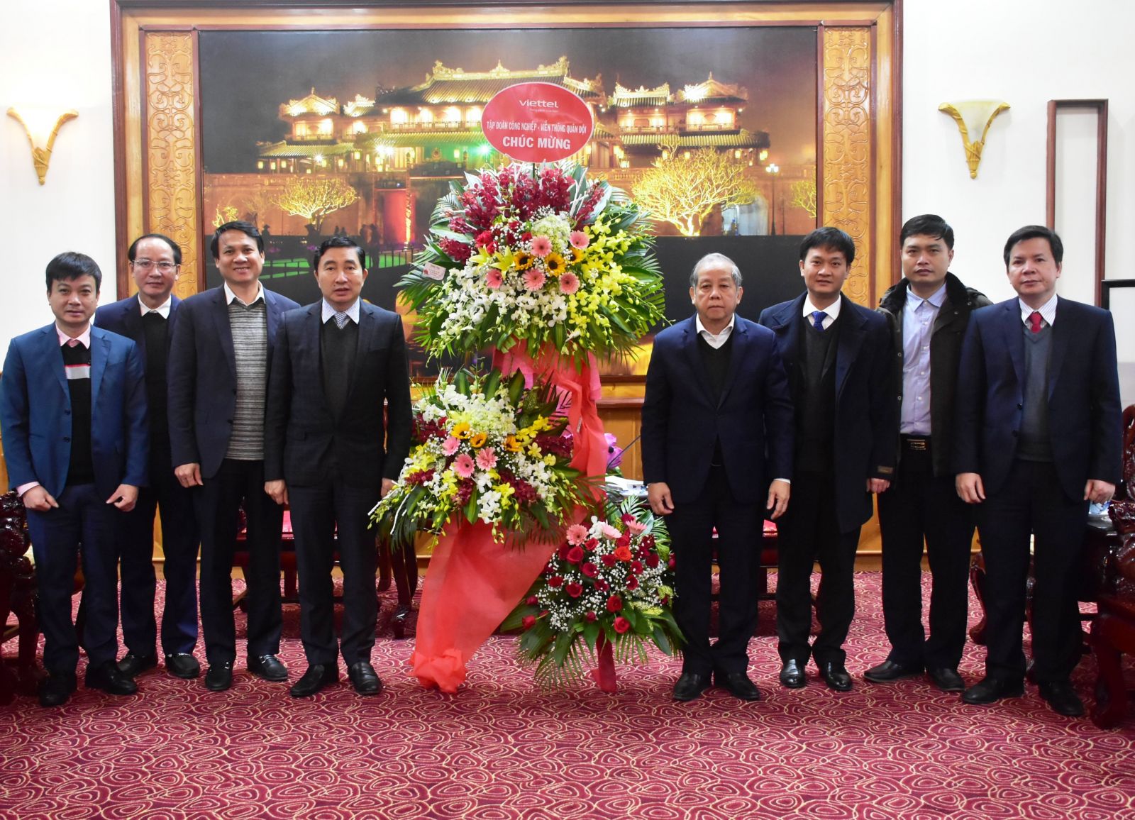 Lãnh đạo Tập đoàn Viettel tặng lãng hoa chúc mừng thành công của Đại hội Đảng bộ tỉnh lần thứ XVI và mong tiếp tục hợp tác với tỉnh trên lĩnh vực công nghệ thông tin