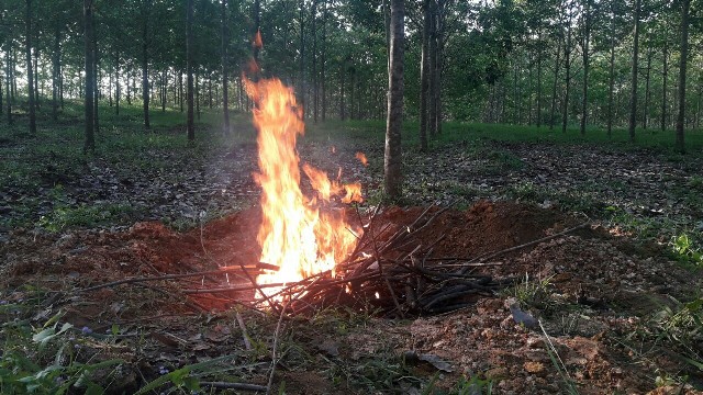 Sau khi dùng hóa chất vôi hóa độc tính để chuyển sang dạng không độc tính, lực lượng chức năng đã tiến hành đốt tiêu hủy số thùng CS thu gom được tại khu vực Nà Chợ Rộng.