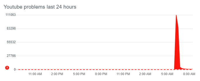 Hiện tượng lỗi YouTube kéo dài khoảng một tiếng sáng nay theo công cụ DownDetector