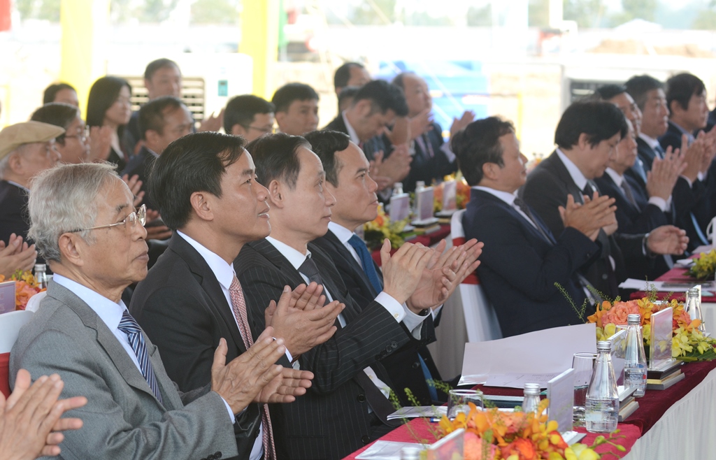 Lãnh đạo Trung ương và Chủ tịch UBND tỉnh Nguyễn Văn Phương (thứ 2, trái qua) chúc mừng dự án khởi công đúng tiến độ
