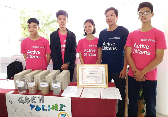 Nhóm tác giả Trường THPT Cao Thắng với sản phẩm gạch polymer từ nhựa thải