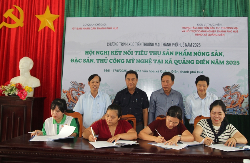 Hội nghị kết nối tiêu thụ sản phẩm nông sản, đặc sản thủ công mỹ nghệ xã Quảng Điền năm 2025 do Trung tâm Xúc tiến đầu tư, Thương mại và hỗ trợ doanh nghiệp TP.Huế phối hợp cùng xã Quảng Điền tổ chức chiều 16/8. Chương trình thu hút 20 doanh nghiệp, hợp tác xã, cơ sở sản xuất kinh doanh trên địa bàn TP. Huế và 4 nhà phân phối, siêu thị, sàn thương mại điện tử tham gia. Sự kiện nhằm giới thiệu, quảng bá sản phẩm thế mạnh; đồng thời tạo cầu nối giữa cơ sở sản xuất và thị trường tiêu thụ, góp phần nâng cao thu nhập cho người dân địa phương.