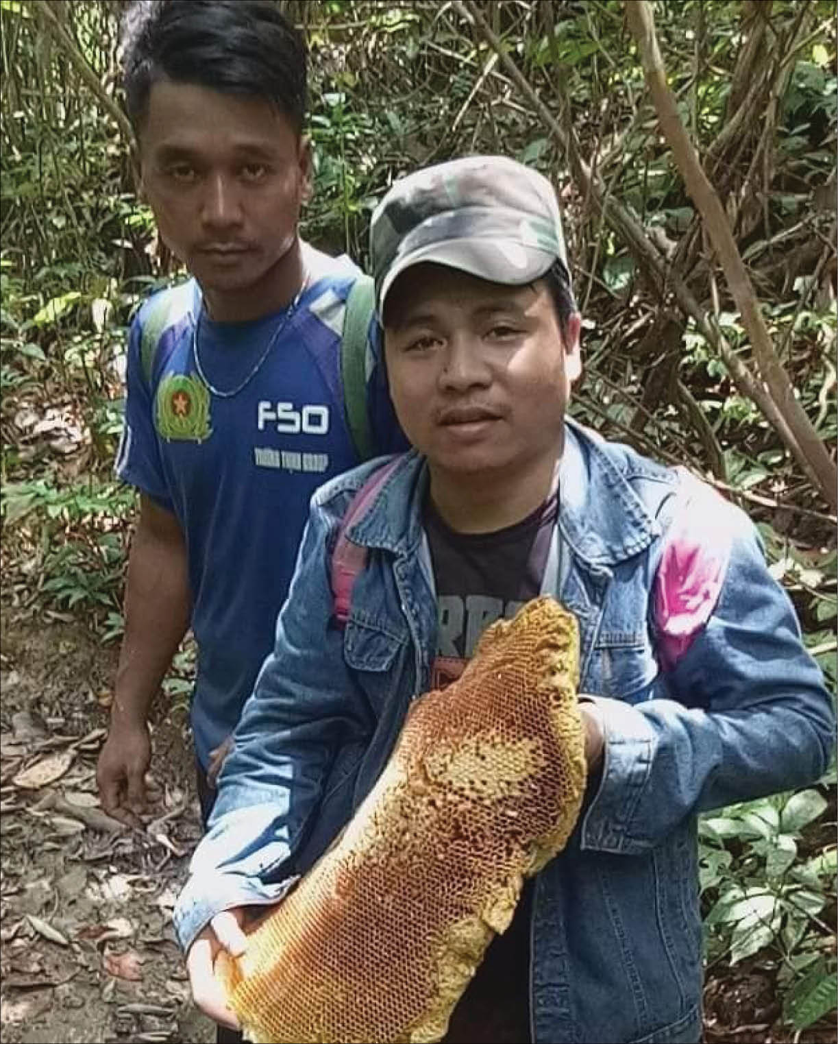 Hồ Xuân Sỹ (bên phải) với người dân vào rừng lấy mật ong