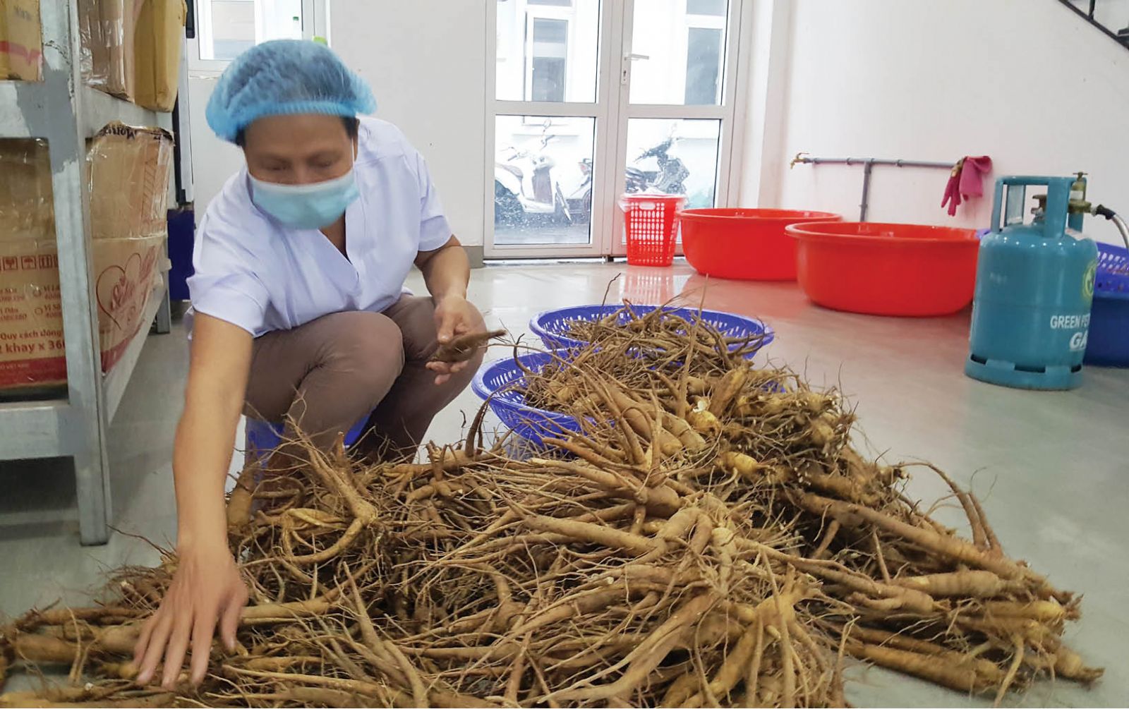Sản phẩm sâm Bố Chính trưng bày cho khách đến trao đổi tại 20 Lê Lợi, TP. Huế