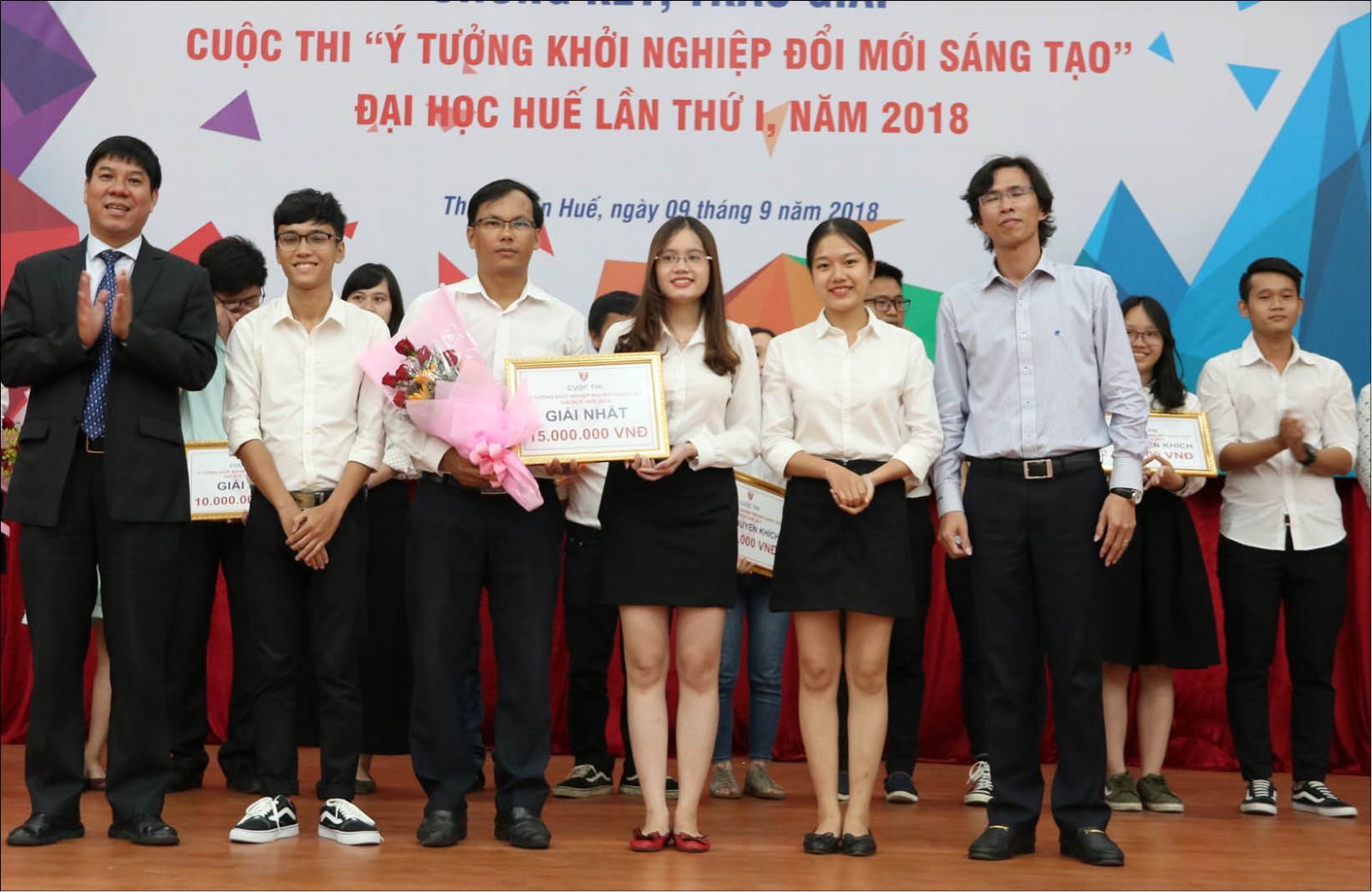 Khoảnh khắc nhóm “Creative Tourism” giành giải nhất cuộc thi Ý tưởng khởi nghiệp đổi mới sáng tạo ĐH Huế năm 2018