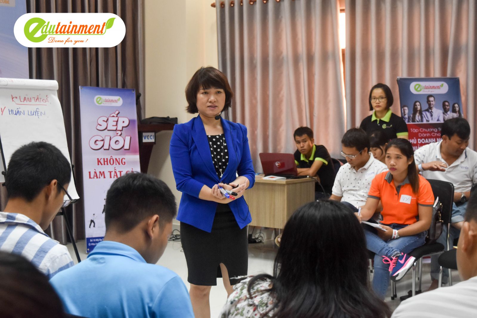 Chị Bích Hà chia sẻ kinh nghiệm quản trị nhân sự trong một lớp đào tạo cán bộ quản lý