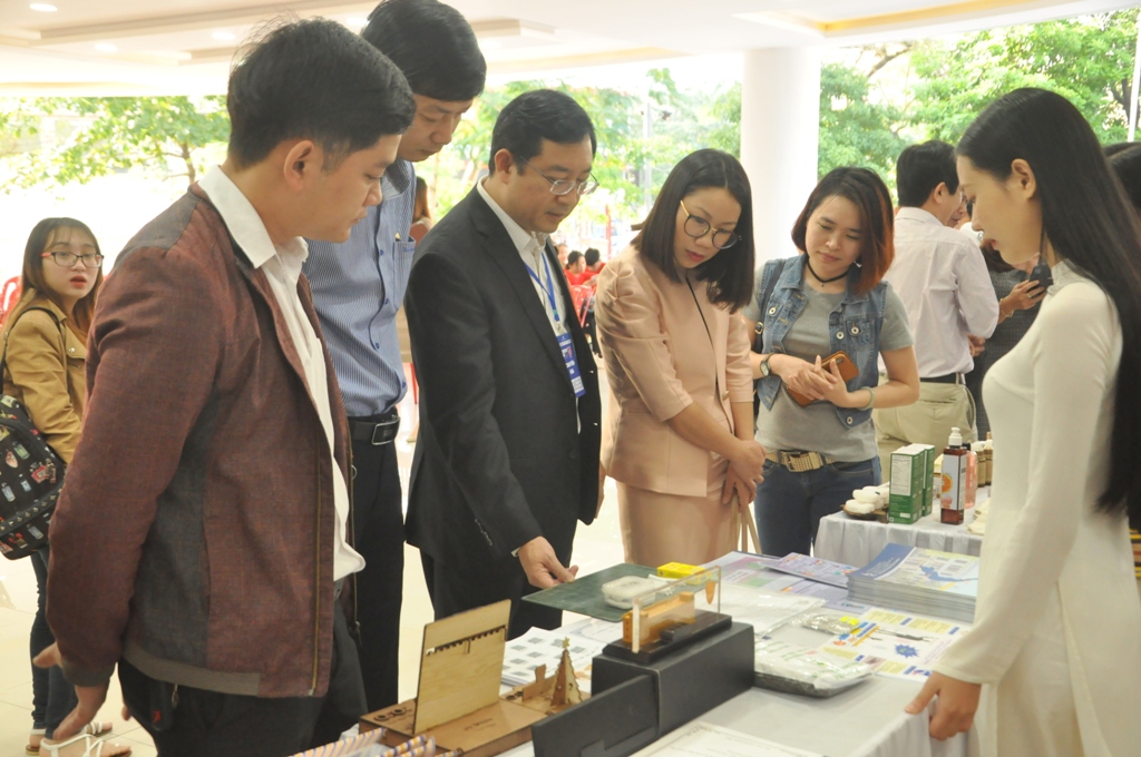 Các đại biểu tham quan các gian hàng trưng bày sản phẩm khởi nghiệp