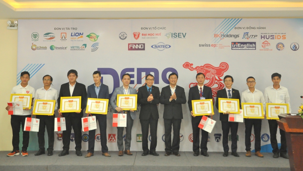 Tại chương trình, Giám đốc ĐH Huế đã khen thưởng 10 cá nhân có nhiều đóng góp trong quá trình xây dựng và phát triển hệ sinh thái KNĐMST ĐH Huế.