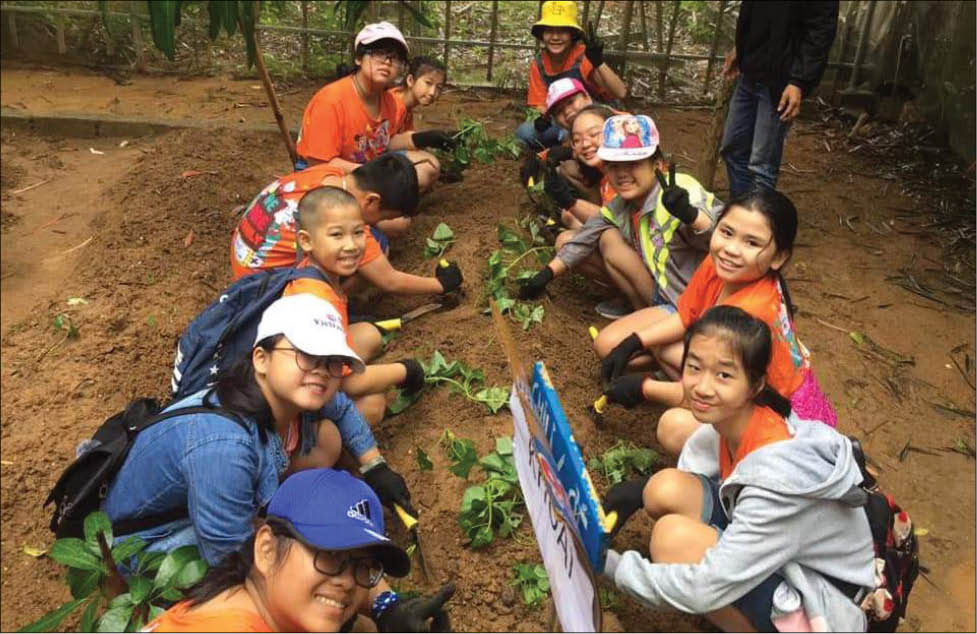 Học sinh Trường Tiểu học Vĩnh Ninh trải nghiệm trồng rau tại Hue Lotus Homestay