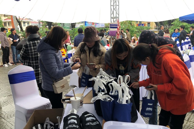 Chủ DN thảo dược Trà My-Huế tư vấn trao đổi với khách hàng bên lề sự kiện