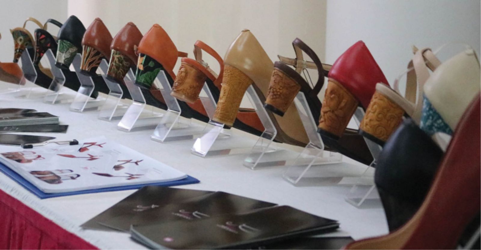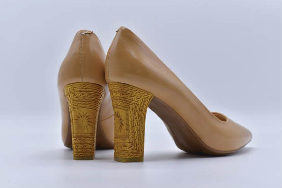 Đôi giày có gót khắc họa tiết trang trí trống đồng Đông Sơn