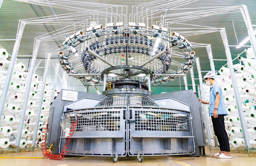 | Dây chuyền sản xuất sợi ở Công ty CP Dệt may Huế. Ảnh: Lê Thọ |