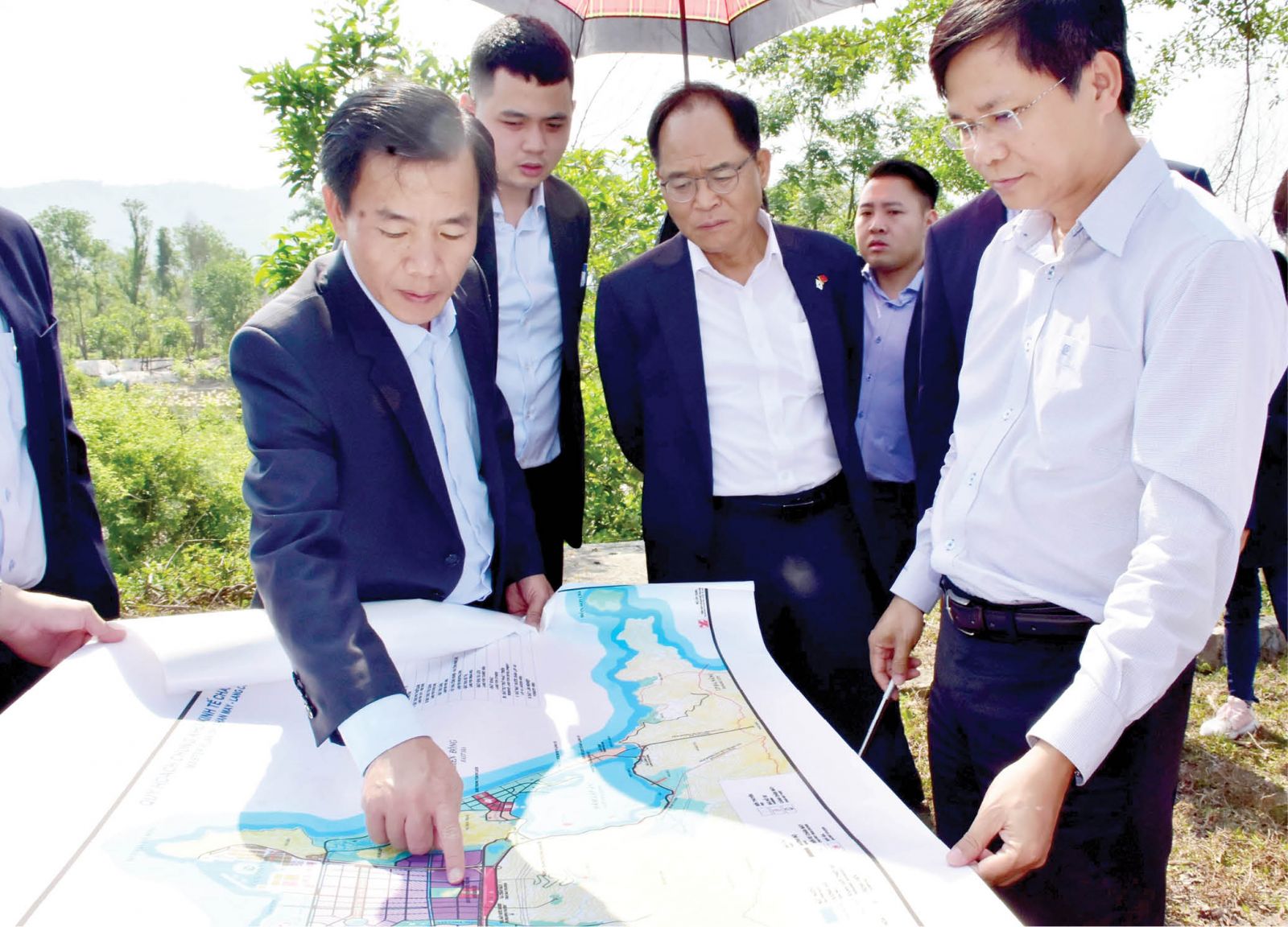 Chủ tịch UBND tỉnh Nguyễn Văn Phương (bên trái) trong 1 lần kiểm tra công tác giải phóng mặt bằng thu hút nhà đầu tư tại KKT Chân Mây - Lăng Cô (Ảnh chụp thời điểm trước bùng phát dịch COVID-19)