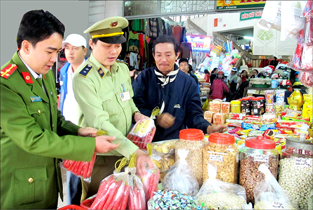 Lực lượng chức năng kiểm tra thị trường hàng tết