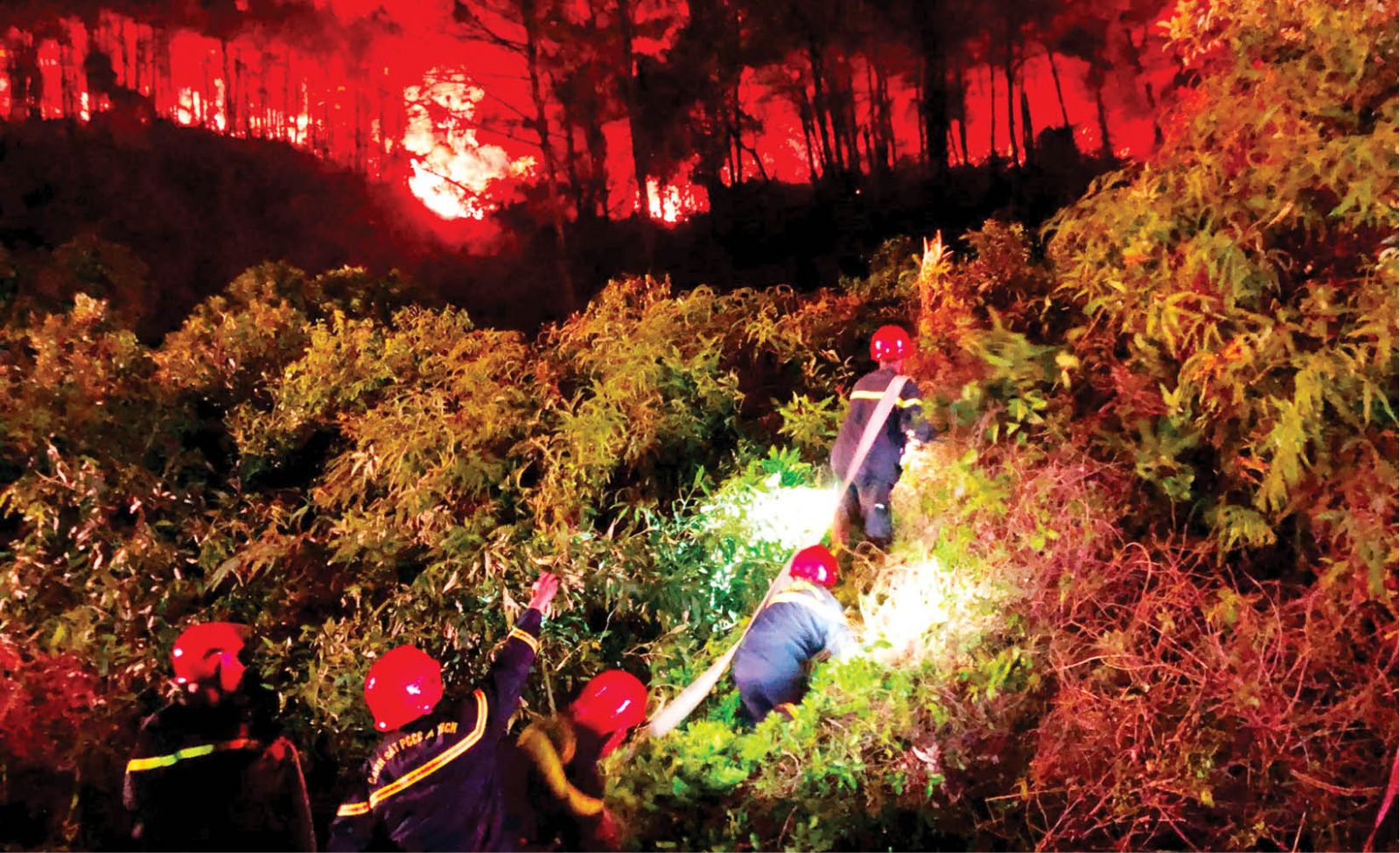 Băng rừng tìm đường chữa cháy trong đêm
