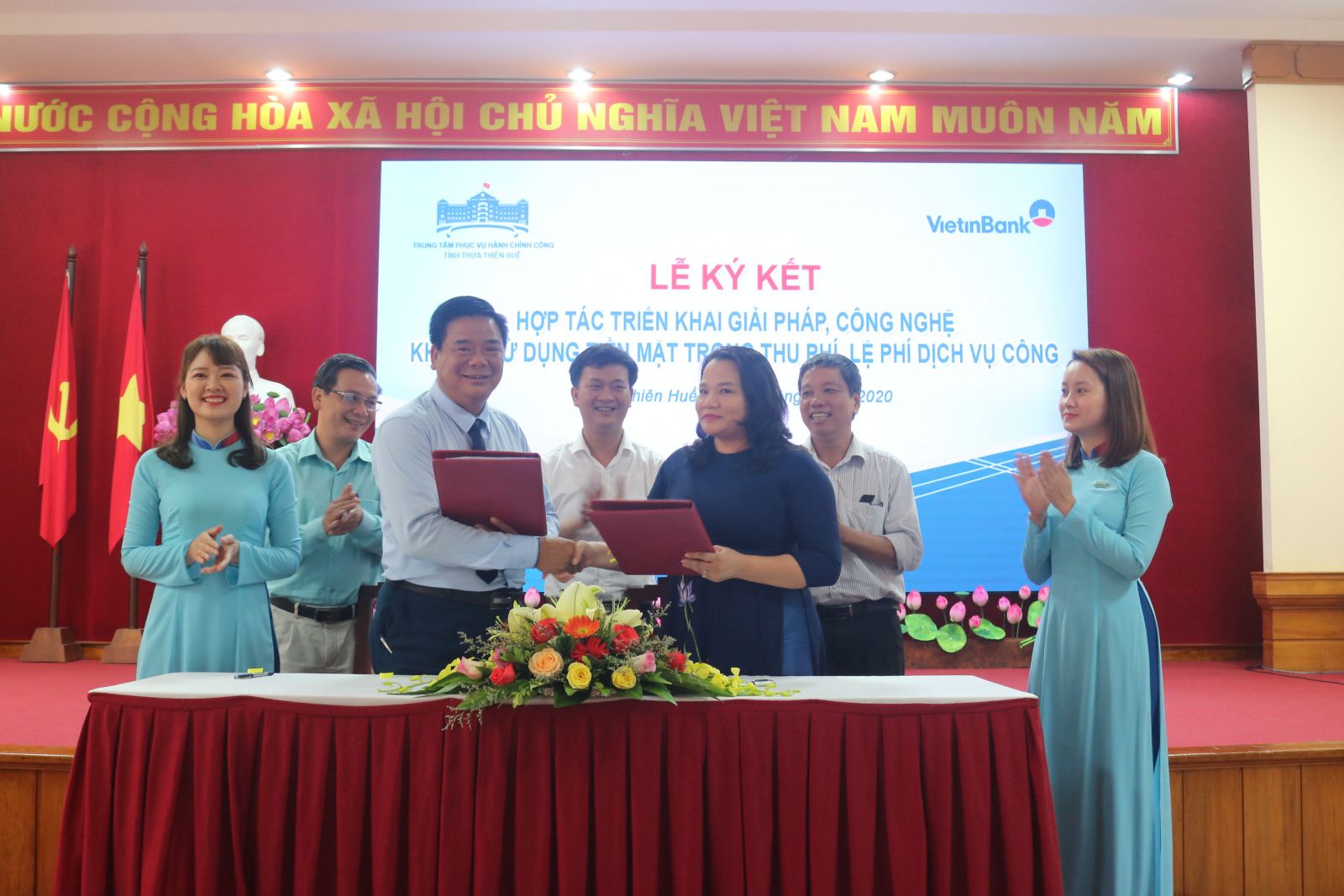 HNN.VN - Chiều 8/7, Ngân hàng TMCP Công thương Việt Nam (Vietinbank) và Trung tâm phục vụ Hành chính công tỉnh (TT HCC) tổ chức ký kết hợp tác triển khai giải pháp, công nghệ không sử dụng tiền mặt trong thu phí, lệ phí dịch vụ công.