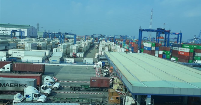 Tình trạng ùn ứ tại Cảng Cát Lái, TP.HCM. Ảnh: Đức Tài.