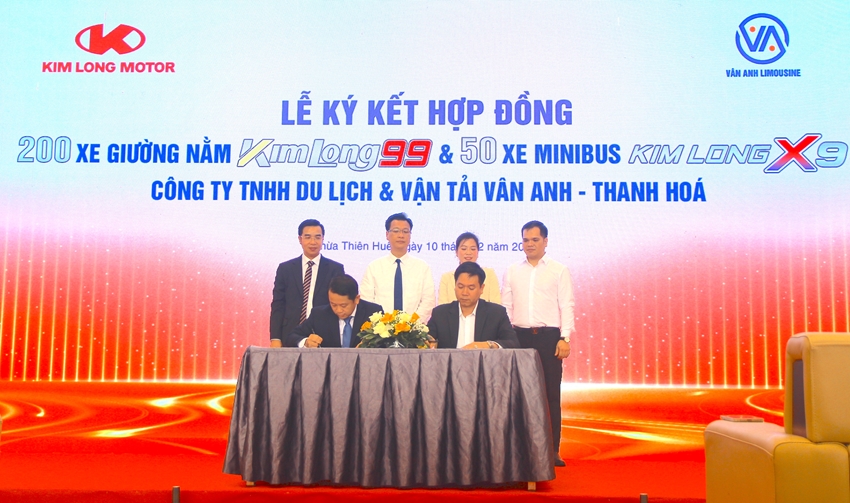 HNN.VN - Sáng 10/12, tại Khu Công nghiệp sản xuất, lắp ráp ô tô KIM LONG MOTOR Huế, Công ty cổ phần KIM LONG MOTOR Huế và Công ty TNHH Du lịch & Vận tải Vân Anh chính thức ký kết hợp đồng 200 xe giường nằm KIMLONG 99 và 50 xe minibus KIMLONG X9.