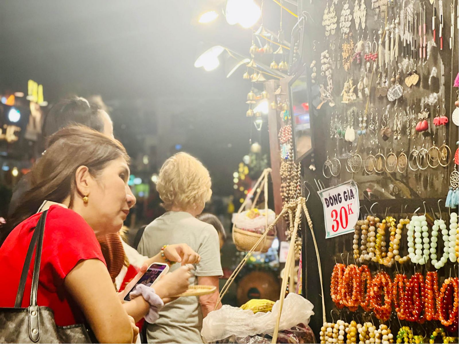 Du khách tham quan, mua sắm tại phố đêm Võ Thị Sáu. Ảnh: MC