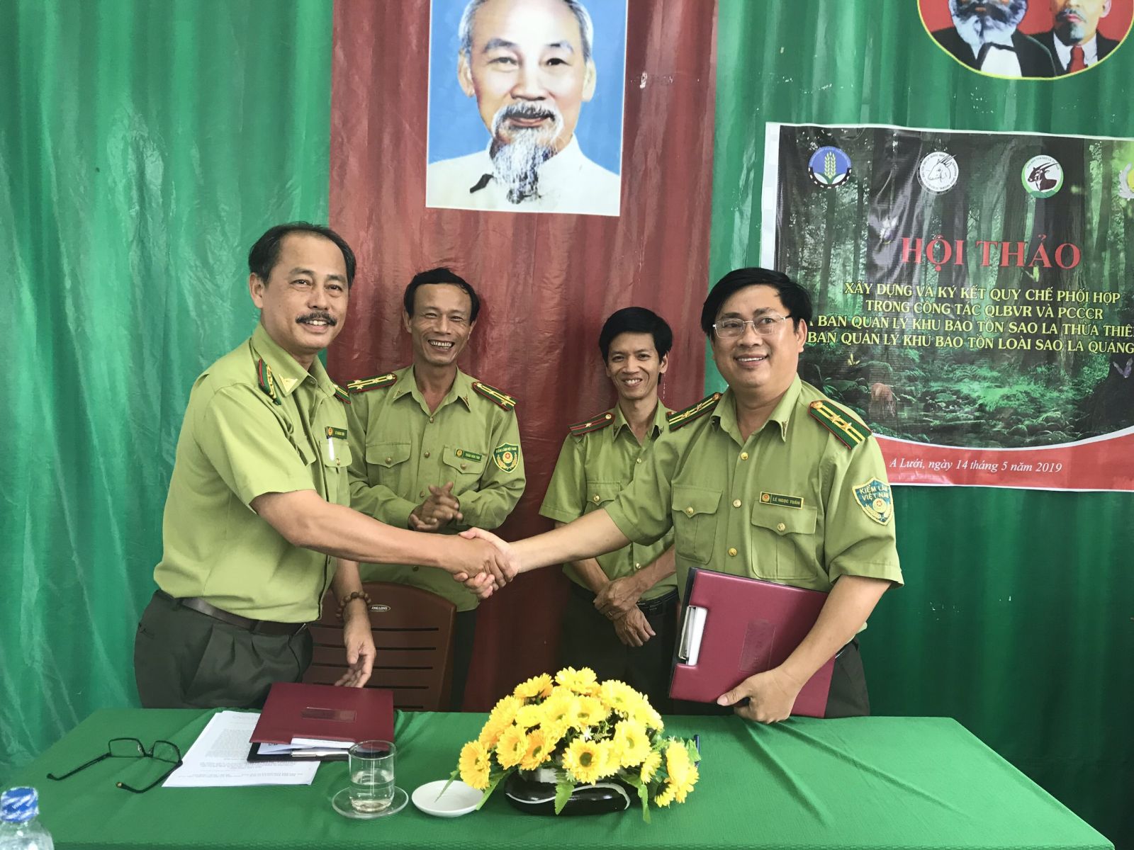 HNN.VN - Khu Bảo tồn (KBT) Sao La tỉnh cùng với KBT Sao La tỉnh Quảng Nam đã ký kết “Quy chế phối hợp trong công tác quản lý, bảo vệ rừng - bảo tồn đa dạng sinh học” vào ngày 21/5.