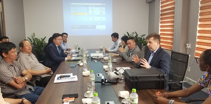 | Đại diện Tập đoàn EU Workers giới thiệu về công nghệ hàn thực tế ảo AI và mong muốn hợp tác đào tạo, tuyển dụng lao động |