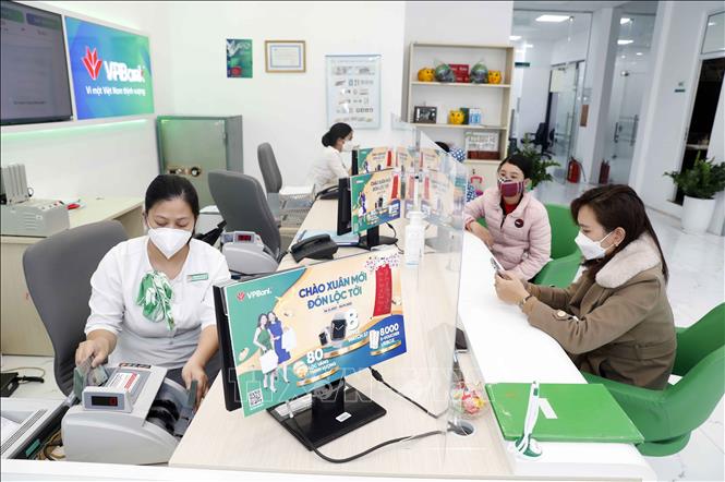 Khách hàng giao dịch tại VPBank Phạm Văn Đồng, quận Bắc Từ Liêm, Hà Nội. Ảnh tư liệu: Trần Việt/TTXVN
