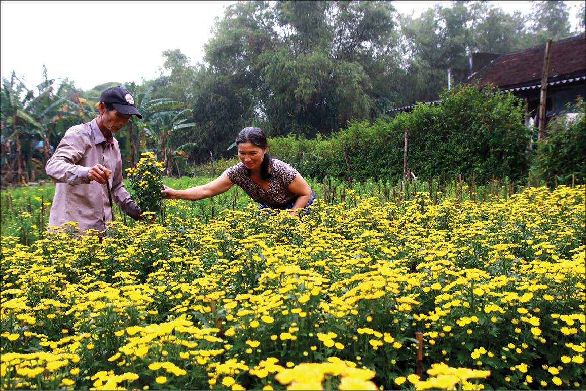 Dẫn chúng tôi đi thăm các cánh đồng hoa, Trưởng thôn Thanh Vinh trò chuyện: Người dân Thanh Tiên trồng hoa quanh năm. Rau cải và hoa cúc là hai loại cây trồng “chủ lực” cho thu nhập cao. Mỗi vụ người dân thu nhập từ 55-60 triệu đồng. Giờ ở Thanh Tiên có không ít người giàu lên từ trồng hoa và rau màu.