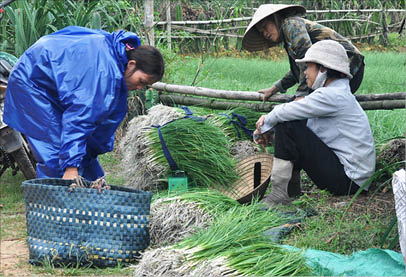 Thương lái thu mua rau hành ngay tại chân ruộng